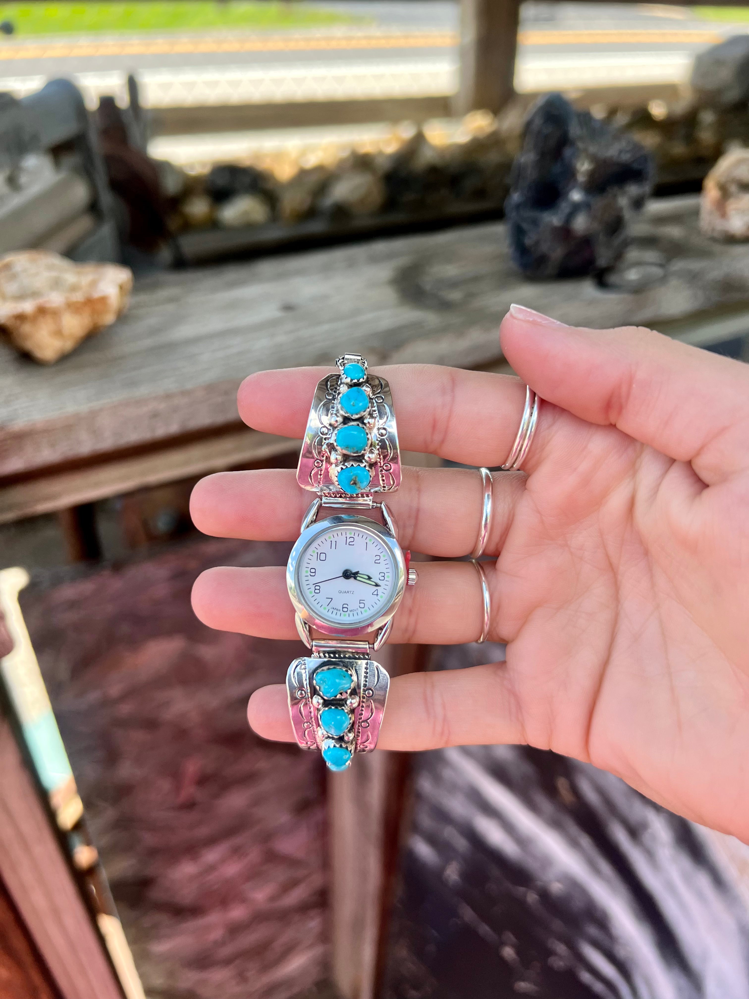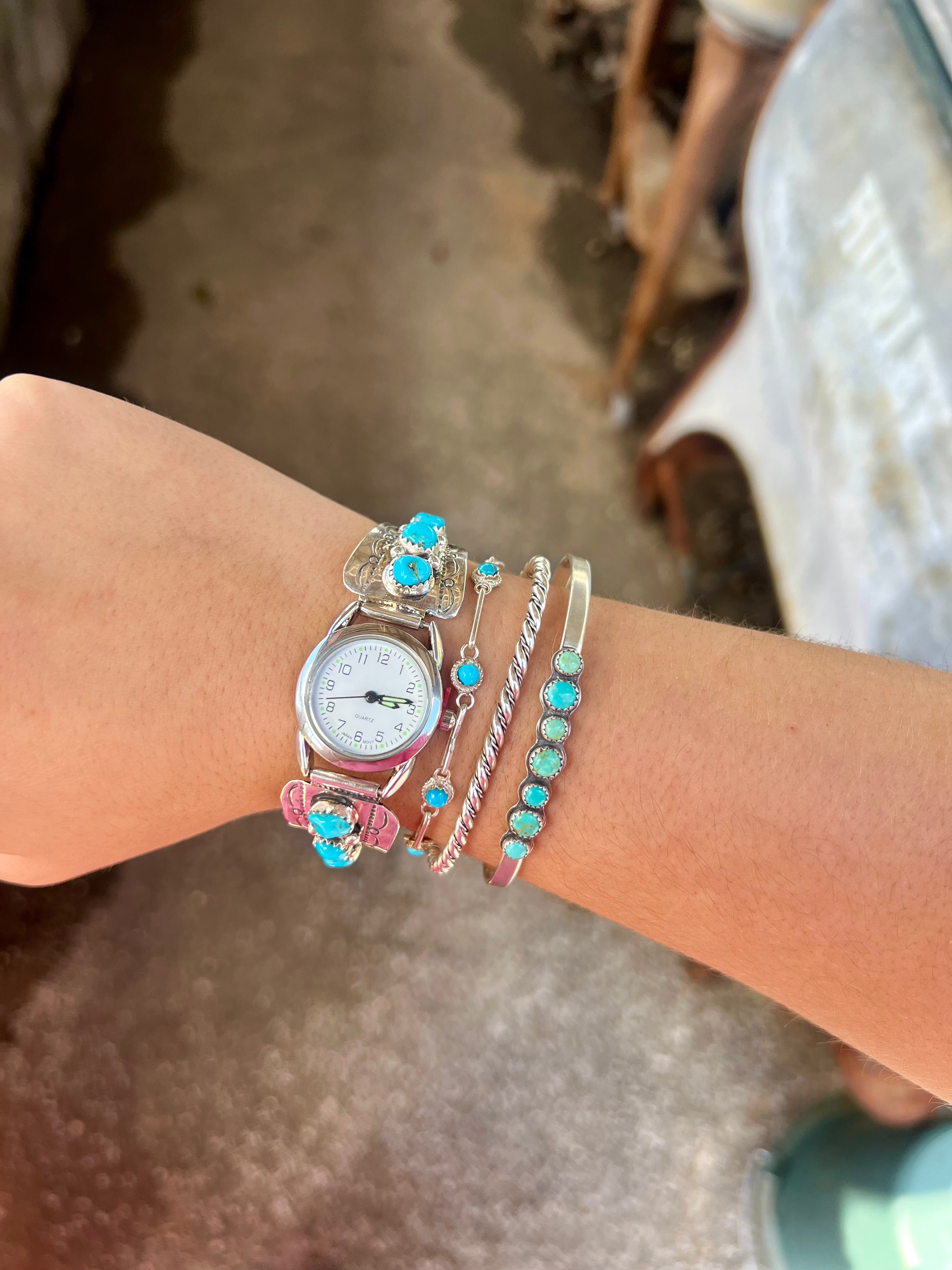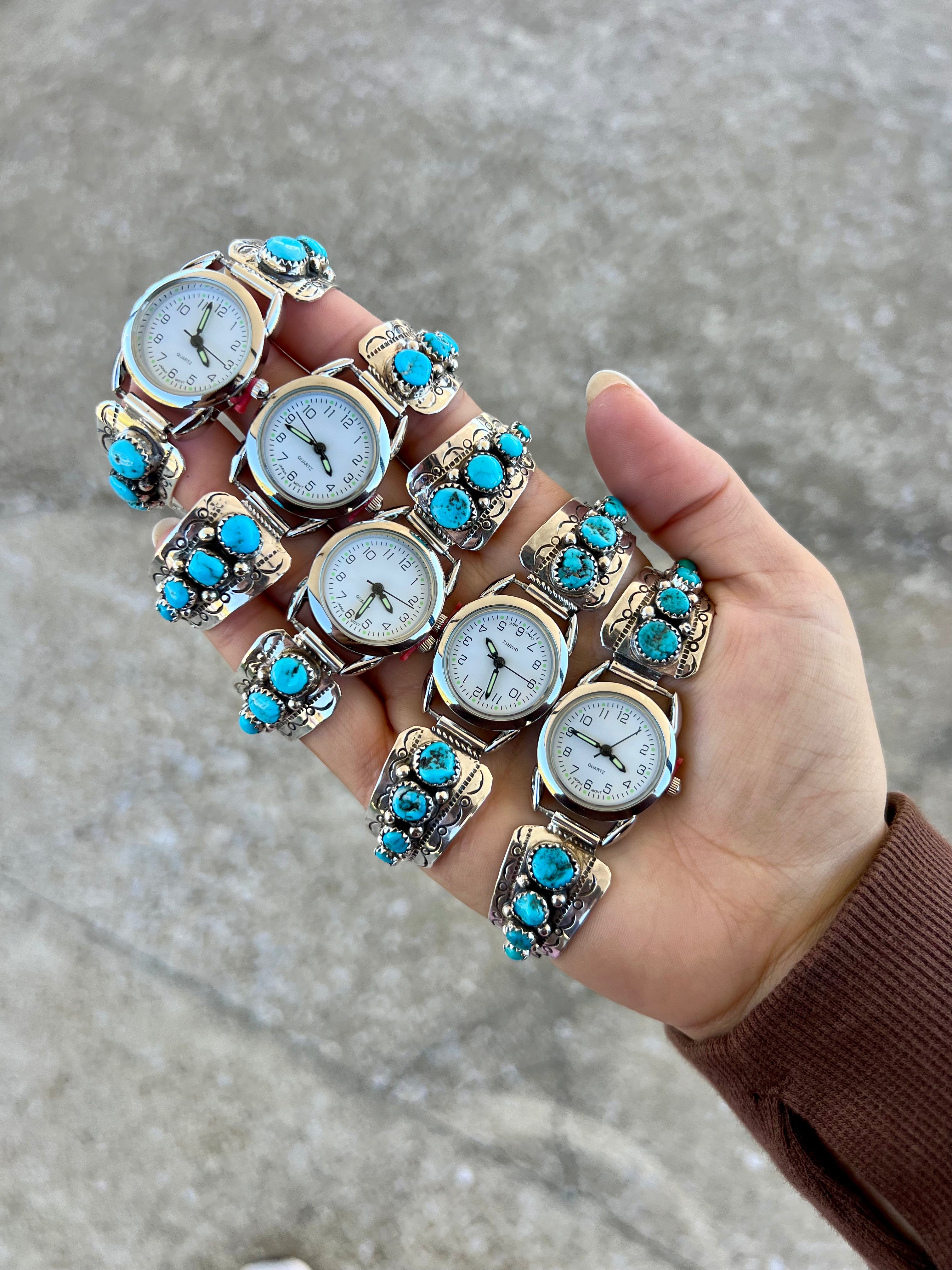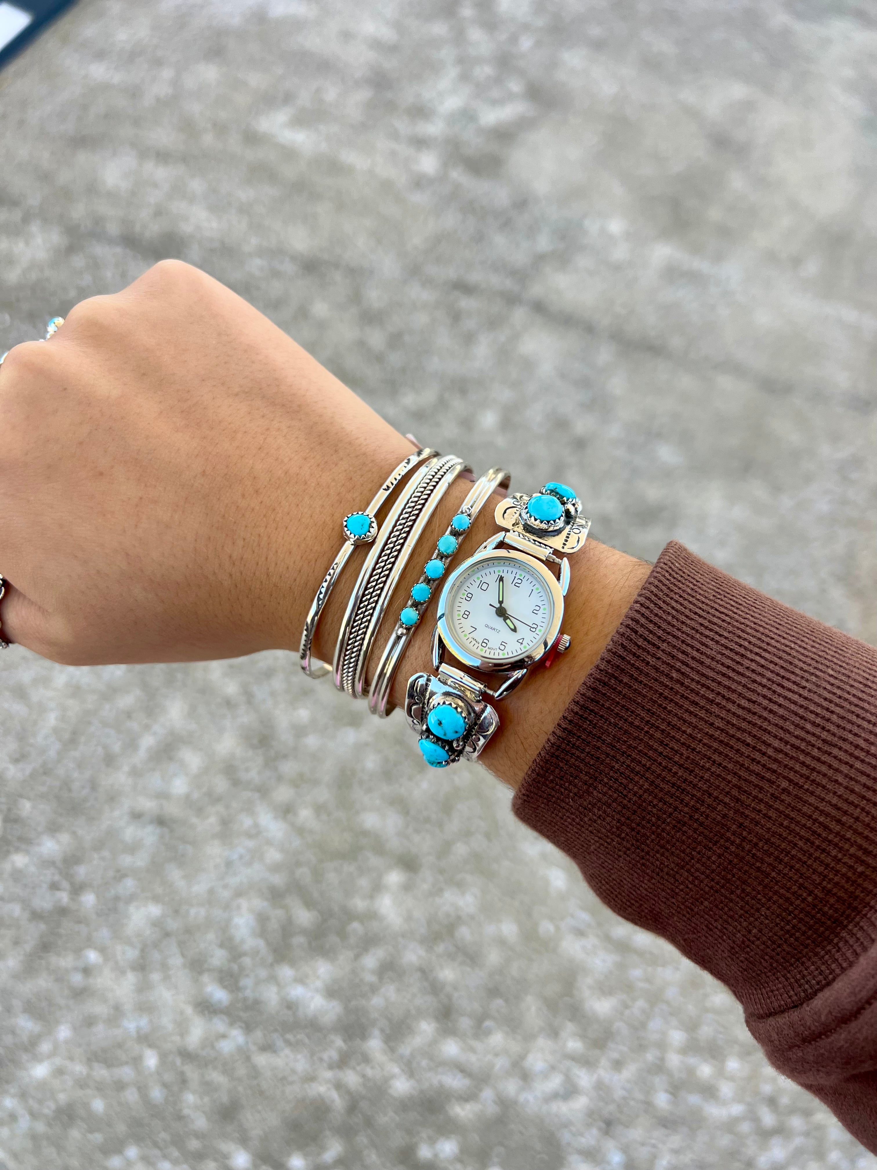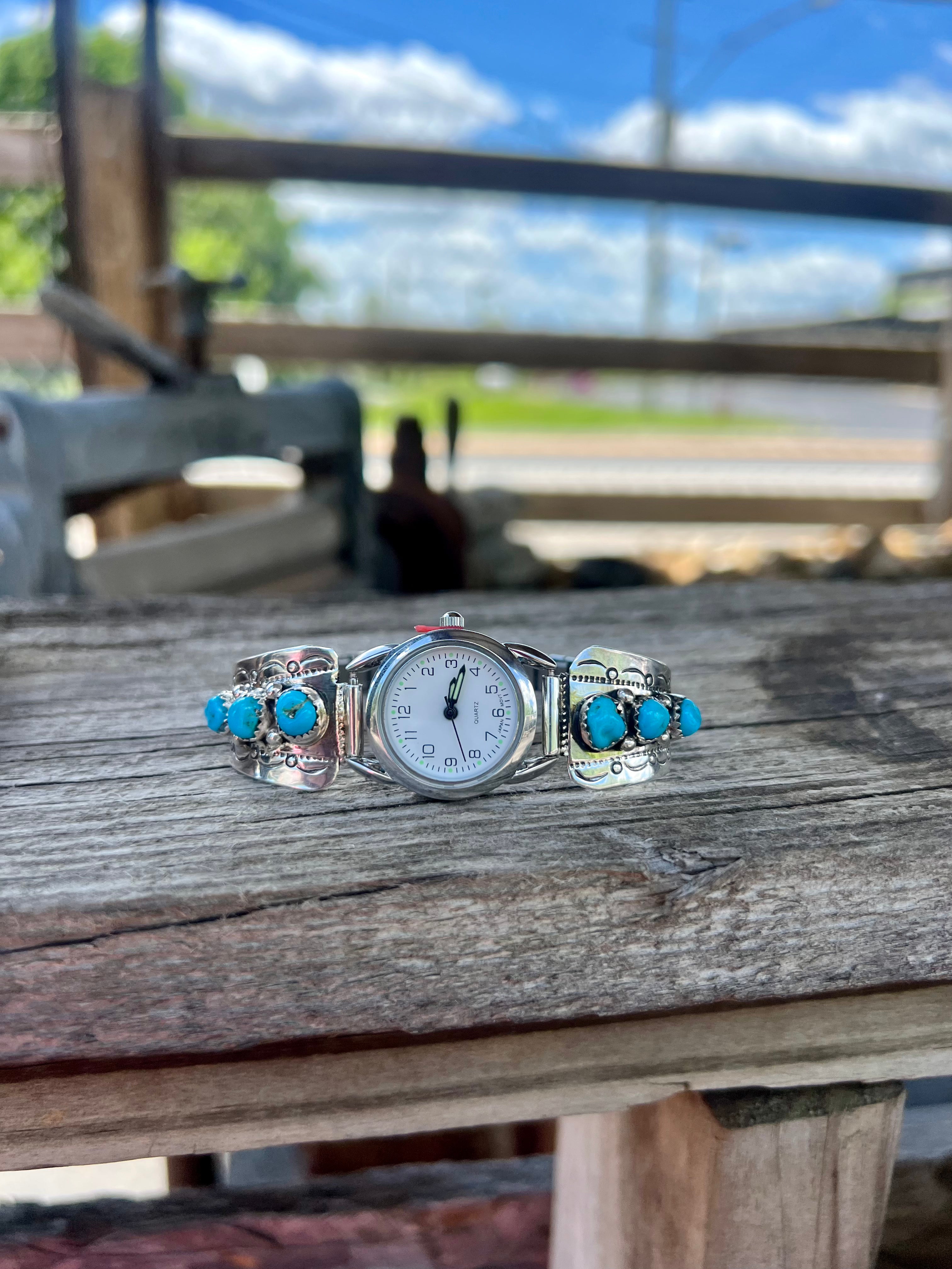 -Authentic Native American handmade and crafted Genuine Turquoise and Sterling Silver Watch