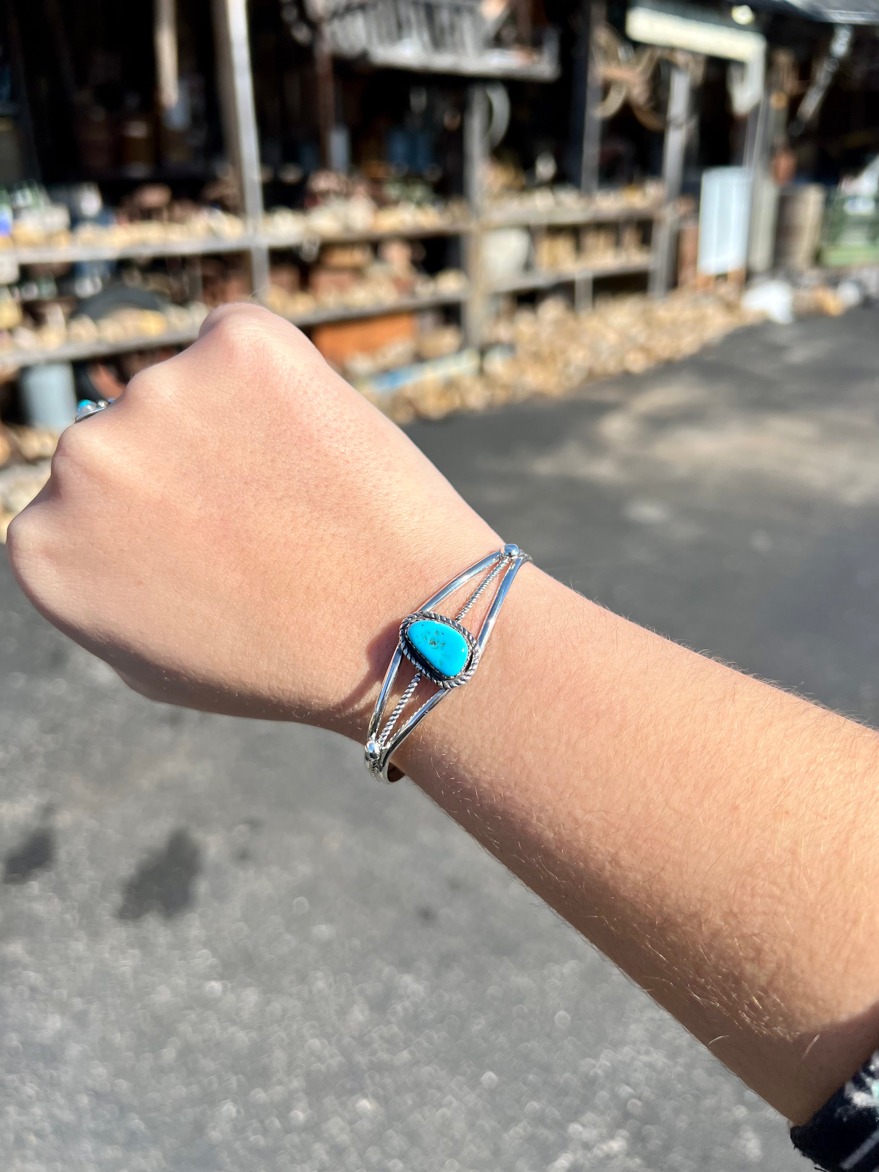 -Authentic Native American Handmade Genuine Turquoise and Sterling Silver Cuff